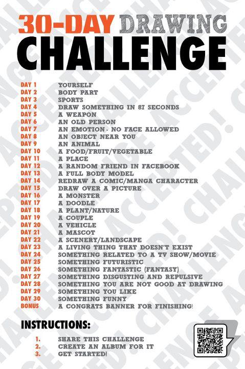 The 30 Day Drawing Challenge Hey Guys Time For A New Drawing Challenge For 2013 For The Next 30 Days Try To Complete This Epic Challenge If You Want To Join